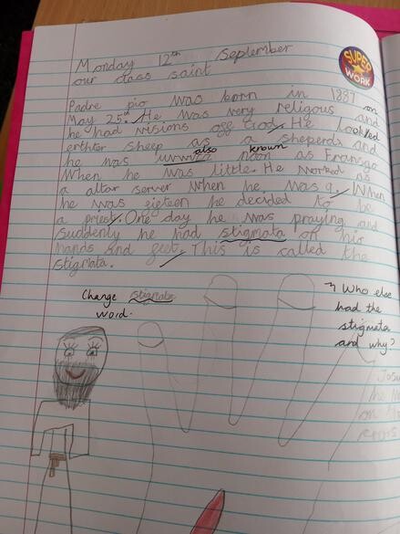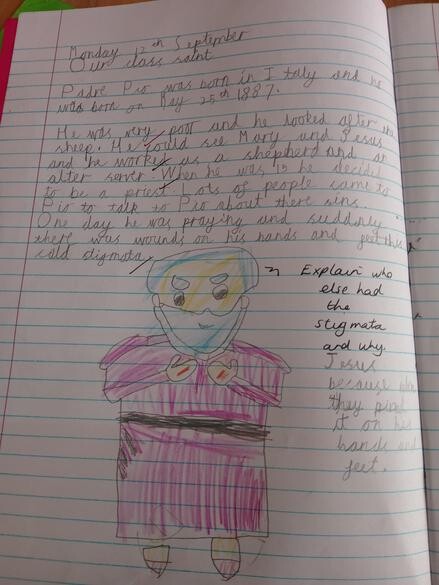 Our Class Saint is Padre Pio. We have been learning about his life. Have a look below at some of our written work about his journey of faith.